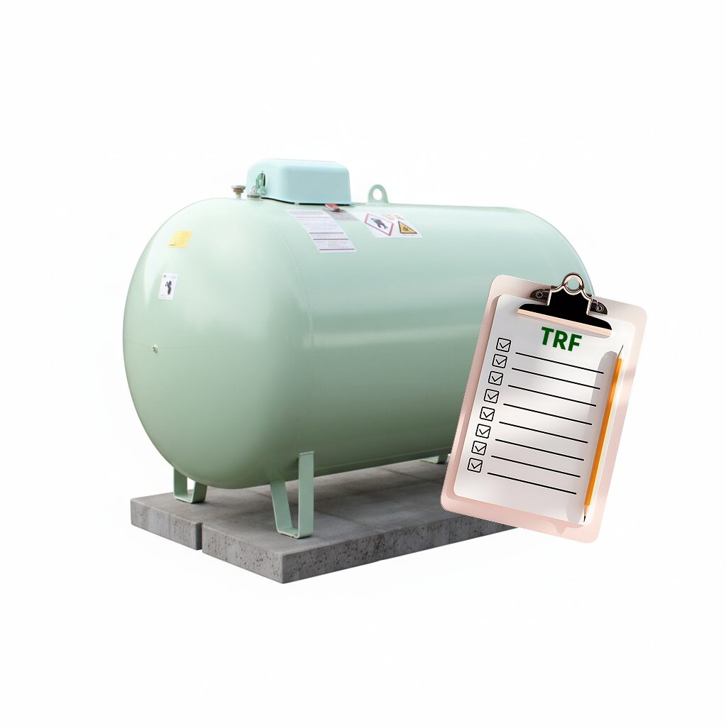 Die Flüssiggasanlage wird unterteilt in zwei Bereiche. Zum einen in die Versorgungsanlage vom Gastank bis zur Hauseinführung oder Hauptabsperrhahn und die Verbrauchsanlage von der Hauseinführung bis zum Verbrauchsgerät (zum Beispiel die Flüssiggasheizung). Beide Teile der Anlage müssen auch eine TRF-Konforme Bauweise geprüft eine Druckprobe gemacht und dies dokumentiert werden.